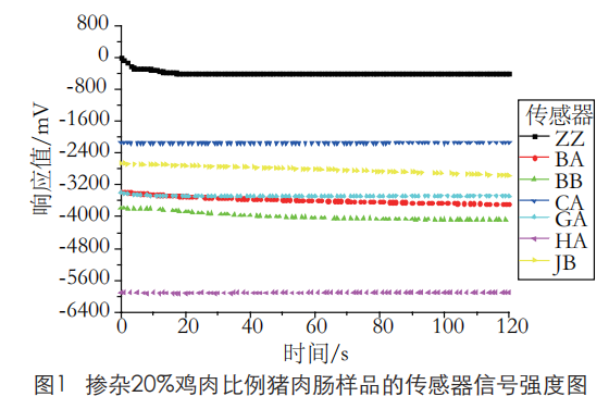 豬肉腸摻雜雞肉樣品的傳感器信號分析