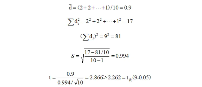 如果t>t表,則兩種食品之間存在顯著差別;如果t<t表,則兩個食品之間無顯著差別。
