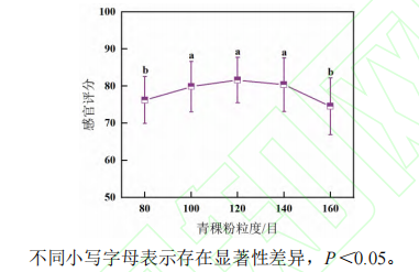 圖1 青稞粉粒度對(duì)漿水青稞奶茶感官評(píng)分的影響