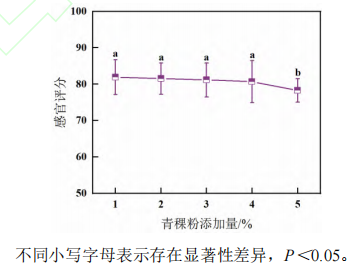 圖2 青稞粉添加量對(duì)漿水青稞奶茶感官評(píng)分的影響