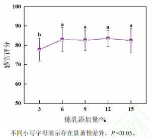 圖4 煉乳添加量對(duì)漿水青稞奶茶感官評(píng)分的影響