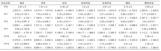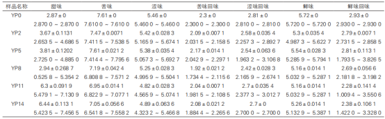 2.1電子舌味覺(jué)測(cè)定結(jié)果